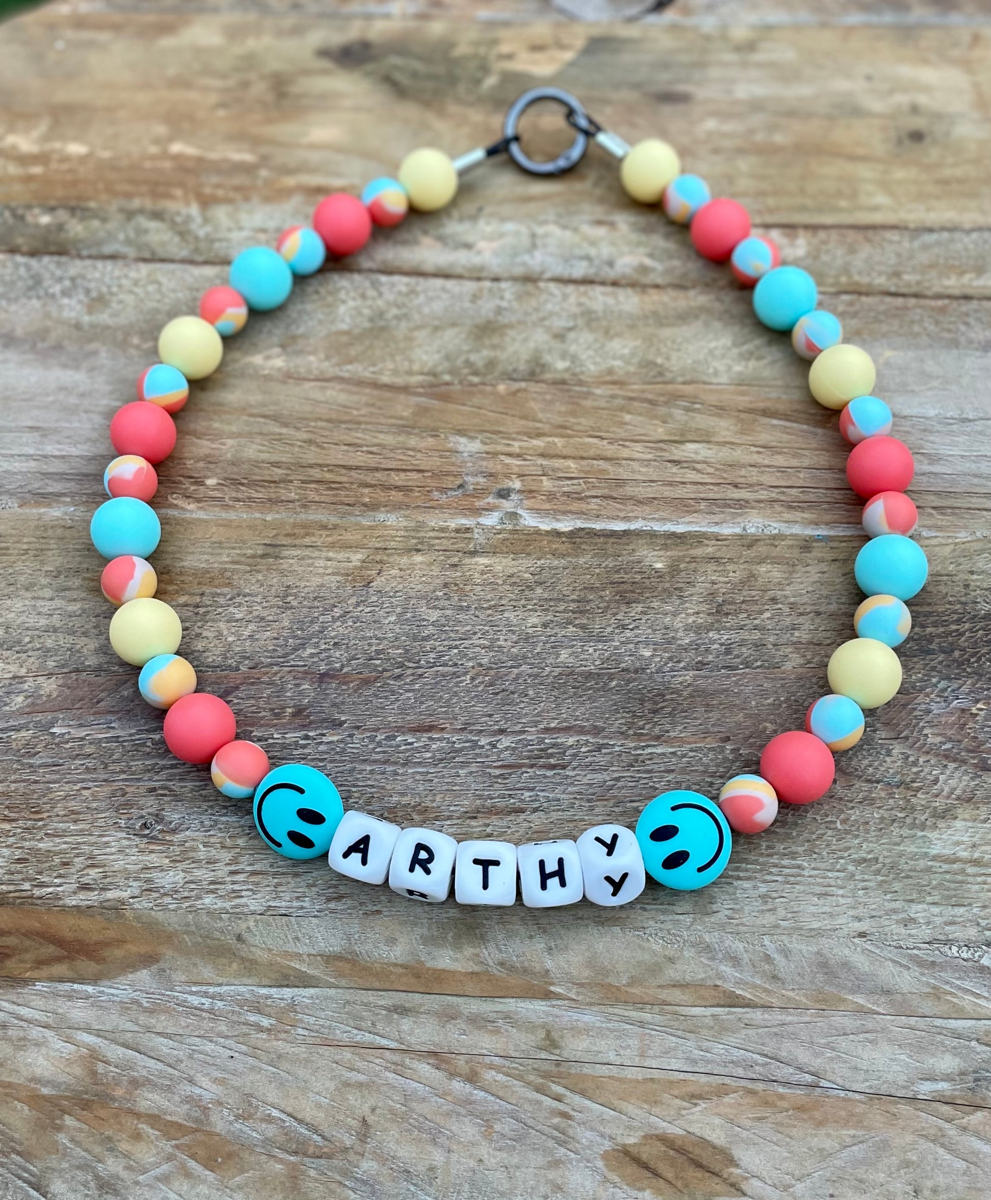 The cutest dog necklace collars for your pet! Fully customizable. INCLUDES: 1 Name & 1 Special Bead